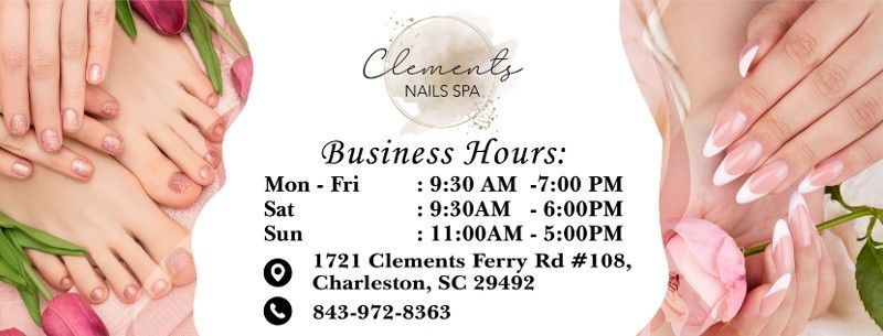 Transform your nails at Clements Nails Spa in Charleston, SC. At Clements Nails Spa, we pride ourselves on using organic products, maintaining hygienic conditions, and employing licensed technicians to provide top-notch services. Our new ownership brings a fresh perspective to the beauty industry, and we're excited to share it with you. From manicures to pedicures, our technicians have got you covered. Book your appointment today and indulge in a rejuvenating spa experience that leaves you feeling refreshed, confident, and pampered.